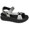 Elle est ornée de plusieurs clous métallisés sur ses brides qui donnent un côté rock. Ce modèle possède une plateforme de 5cm qui donnera beaucoup d’allure à vos tenues estivales.