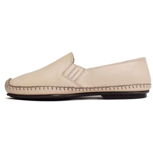 Fluchos vous propose un mocassin qui épousera parfaitement la forme de notre pied. Fluchos le dote de deux élastiques sur les côtés pour un chaussage simple, d’un cuir lisse et de coutures apparentes.