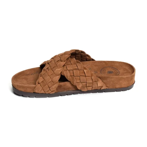 La SB440 de chez l’Atelier Tropézien est une mule munie de deux épaisses brides en cuir tressé.
